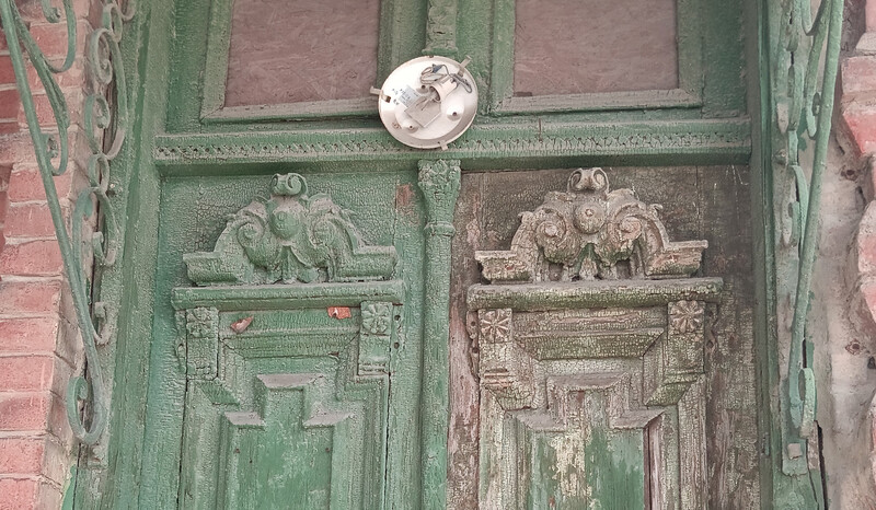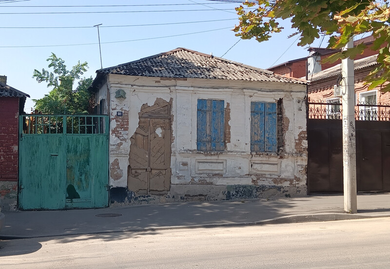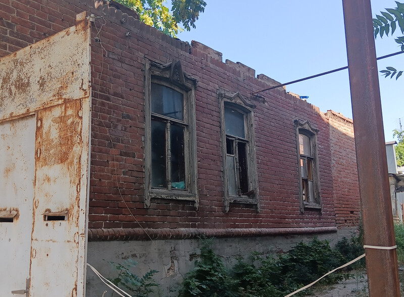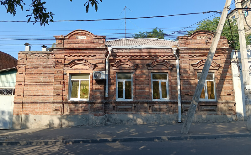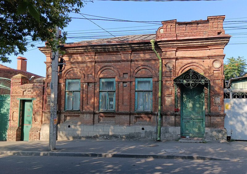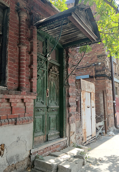 | Прогуливаясь по нахичеванским улочкам не раз обращала внимание на один дом. Он уже полуразрушен со двора и именно благодаря этому, проходя мимо, я заметила, что солнце светит из окна на улицу, а значит изнутри солнечным лучам нет преград. Я понимаю, что заглядывать в окна очень нехорошо, но любопытство пересилило. И точно – задней стены у дома практически нет. Поначалу в глаза бросилась круглая лепная розетка на потолке в дальней комнате и изогнутый аркой дверной проем. Розетка, конечно, почти обсыпалась, но еще можно увидеть ее окружности. И только потом увидела более красивую розетку на потолке ближайшей комнаты. Она в форме звезды, окрашенной в зеленый цвет. И, на сколько можно судить, абсолютно целая. Яркое небо и листва, отражающиеся в оконном стекле, никак не давали в полной мере заснять эту красоту. Зато хорошо видна лепная филенка по периметру потолка. Дверь в этом доме тоже не из обычных. Деревянный козырек на кованых опорах еще сохранил резные элементы. А сама дверь – настоящая ода столярному мастерству. Особенно на правой створке, где облезли все слои краски, хорошо виден узор. Возможно, от сильного нагрева эта часть поменяла цвет и облупилась. Но явных следов пожара не видно. Окна со стороны двора еще не совсем растеряли «родные» наличники, но дело к тому идет. Судя по документам оценки дореволюционного времени, в период 1912-1915 гг дом принадлежал Брандт Варваре Ивановне. И, судя по жилищу, была она не из самых бедных слоев населения. А вот домик попроще и победнее. Но дверь там тоже отличается своей неповторимостью. Но только ее упрятали по известной только хозяевам причине под толстый слой глины. Под действием погоды и времени штукатурка и глина отвалились и на свет проглянули детали двери. И еще два красавца, один 1907 года, второй 1906. Оба обитаемы, в первом даже заменены окна, но при этом остались признаки его родословной – год рождения и буква «Е» от имени его владельца. Как говорят нам яндекс-карты, хозяином этого дома в стародавние времена был Нитченко Емельян Михайлович, отсюда, видимо, и буква «Е». Но, полистав справочники, пока не буду подтверждать или опровергать правоту упомянутой карты. С давней нумерацией домов и их принадлежностью еще стоит разобраться, там возникает много вопросов. На втором доме год фигурирует на кованном козырьке. И, обратите внимание, входная группа с калиткой и угол дома охвачены металлическими уголками. То есть люди не спешат, снести старые кирпичные колонны, а стараются бережно сохранить старину. Уважение и благодарность им за это. А нам с вами, друзья, после суеты и шума давящего стеклянно-бетонного города, будет приятно «отдыхать глазами», глядя на такие уютные, дышащие историей, дома. | |