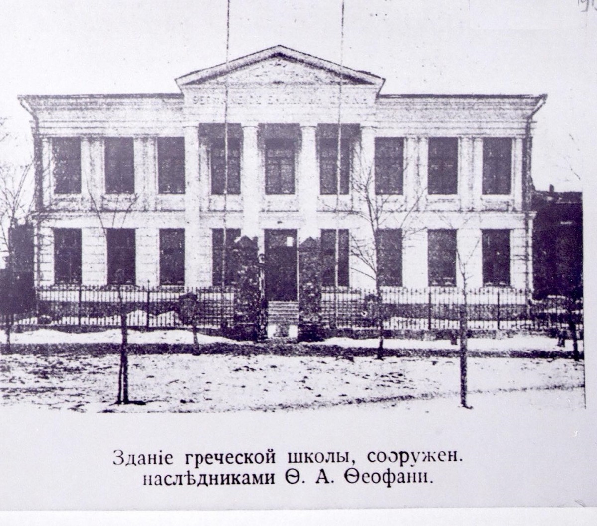 | В Ростове на Дону с самых незапамятных времён обосновалась большая греческая община. Ростовские греки не просто составляли некоторую часть его населения. Если обратиться к трудам историка середины 19 века, А.А. Скальковского, можно узнать, что в первую очередь грекам наш город обязан началом быстрого роста своей экономики. Благодаря грекам семейства Скараманга, Пиниотелли, и многим другим, Ростов стал хорошо известен, как перспективное место для международной торговли даже в Англии, они в числе других устроили здесь первые банковские учреждения, а в имении Скараманга на Почтовой улице, в 1869 году неоднократно принимали людей царской фамилии, путешествовавших на Российский юг и в Крым (см здесь и здесь). Семейство Феофани относится к более поздним грекам – поселенцам г. Ростова на Дону. Два брата, Фёдор и Харлампий Афанасьевичи, поначалу, работали простыми матросами на судах торгового флота, затем, проплавав по Черному и Азовскому морям 8 лет, Харлампий выслужился до капитана судна. Братья смогли составить некоторый капитал и приобрели собственное судно. Со временем у Феофани возникло собственное пароходство, кроме того, для поддержания своего флота они обзавелись собственным доком для ремонта кораблей и для постройки барж. Достигнув финансового благополучия, братья стали заниматься благотворительностью, отпуская крупные суммы на нужды греческой общины города. Но большинство греков, состоянием по скромнее названных, образовали свою общину, поселившись в районе между Ткачёвским и Богатянским переулками, там, где сегодня расположен названный в честь этой общины, Греческий переулок. Обживаясь на этом месте, они выкупили у города для нужд общины участок земли на углу Ткачевского переулка и Малой Садовой улицы, где в 1907 году состоялась закладка греческой церкви. Следует сказать, что на постройку церкви семейством Феофани была выдана крупная денежная сумма. Но церковное подворье занимало не более половины всей территории общинного участка. Его приобретали, явно, как площадь для различных общинных нужд и вновь себя проявили Феофани. В память умершего в 1909 г. и похороненного в ограде греческой церкви, одного из основателей их компании, Фёдора, его потомками, Михаилом с братьями, было выстроено на второй половине греческого подворья двухэтажное здание школы для детей из греческих семейств. (фото 1912 г., газета "Приазовский Край") Здание школы представляет собой постройку солидной архитектуры с входной группой, украшенной 4-я колоннами, стоящими на площадке со ступенями, удерживающими портик здания, под которым была выполнена подпись: «Феофани Ф.А. Эллинская школа» (сегодня этой надписи нет). Располагаясь неподалеку от Греческой церкви, своими рядами колонн, оно хорошо вписывалось в общее подворье Греческого благотворительного Общества, при этом территориально было отделено от здания церкви невысоким забором, простоявшим до самых 1960-х г.г. Построено оно было не много более, чем за год. В середине 1910 года городской думой было заслушано представление управы и принято решение о не возражении к постройке этого здания, а в декабре следующего года «Приазовский Край» сообщает: «Завтра 1911.12.18 в 12 час. дня состоится освящение греческой школы им. Феофани Ф.А. В греческом храме будет отслужена панихида по покойному. В школе в настоящее врем